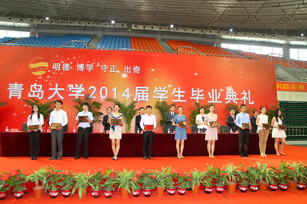 典礼上,毕业生代表还为就业先进个人颁发了证书,向家长和教职员工代表献上了鲜花。最后,毕业典礼在全场齐唱《青大之歌》中圆满结束。